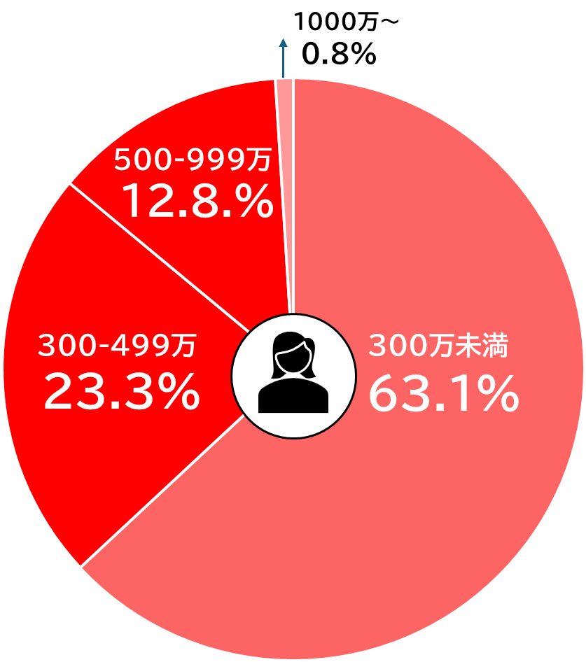 年収500万円以上の男性が60%以上を占め、安定した収入の方が多く活動されています。
